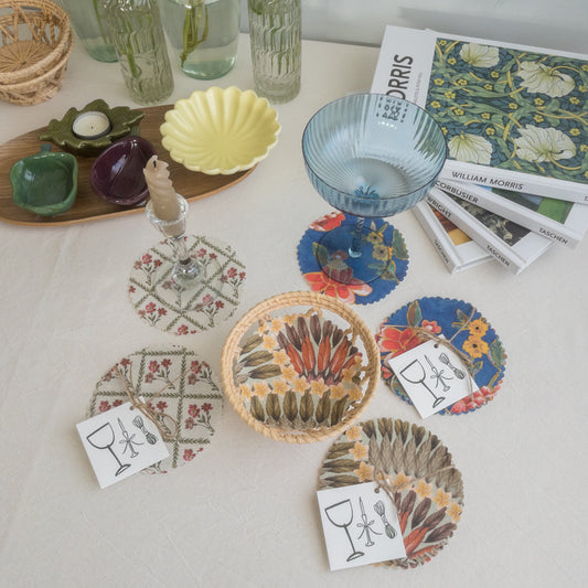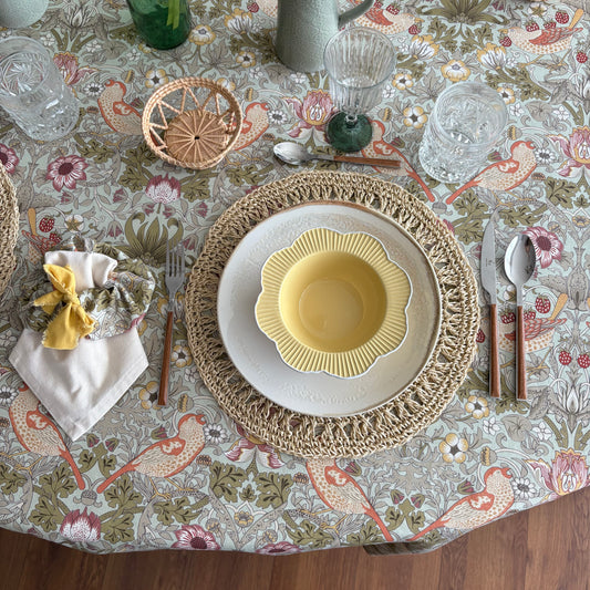 Malvasía nos lleva al encanto de una casa de campo inglesa, con sus jardines frondosos y aves entre flores. Un estampado original de William Morris x Querida Sobremesa que aporta carácter a tu mesa y es perfecto para quienes disfrutan de los detalles.