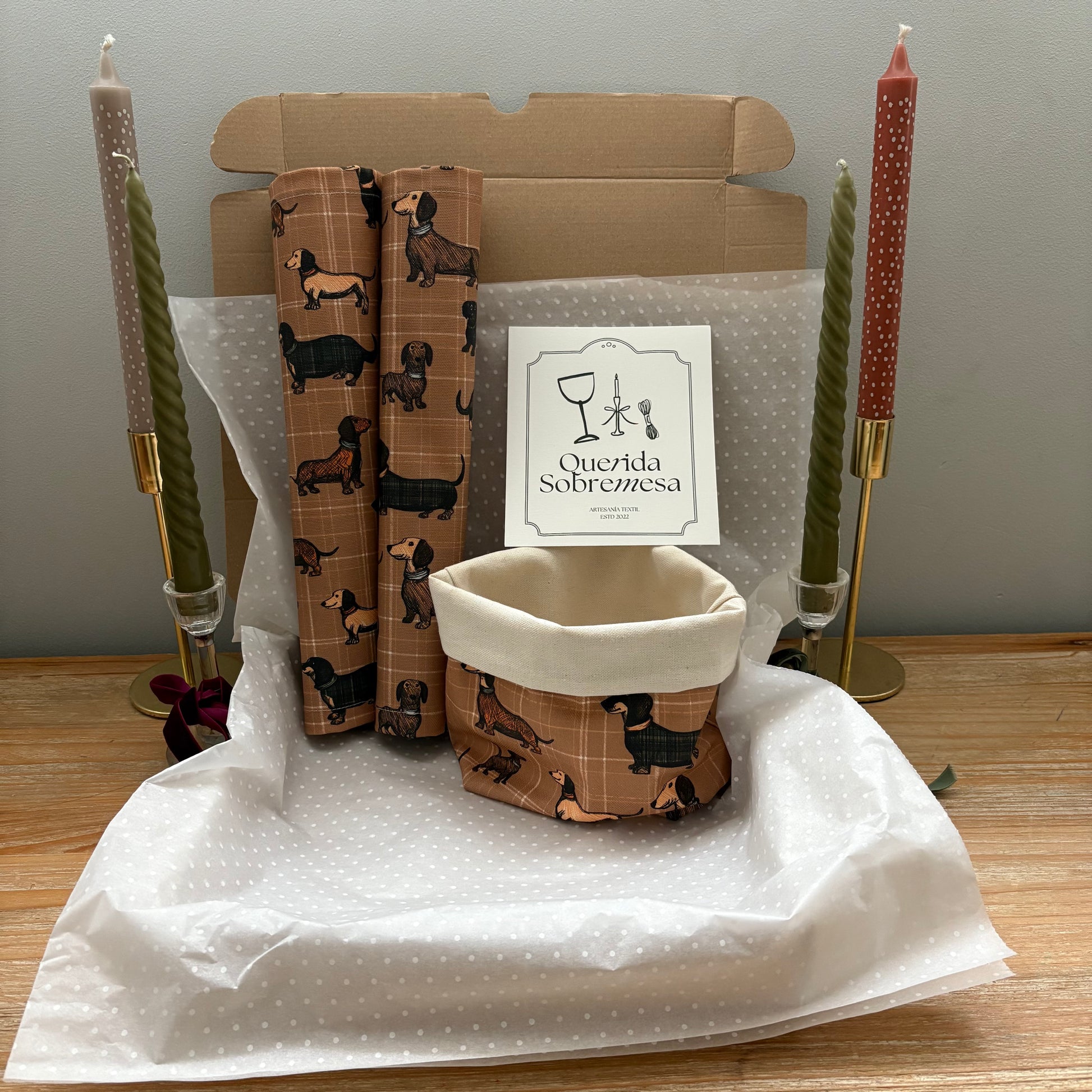 El packaging está muy cuidado, los manteles y la panera son preciosos. Se nota el cariño en cada detalle.