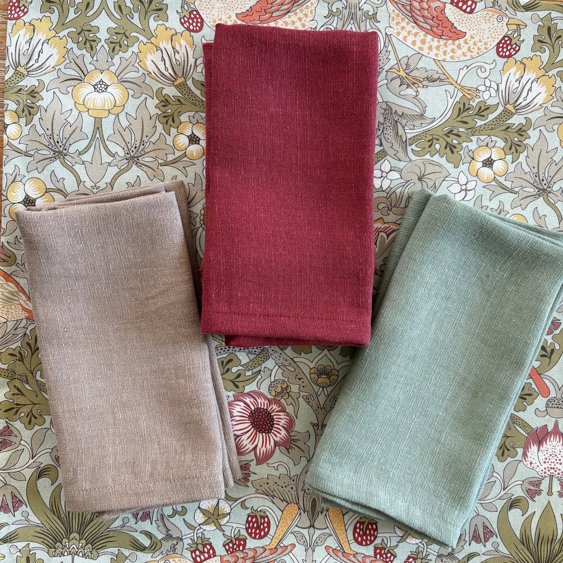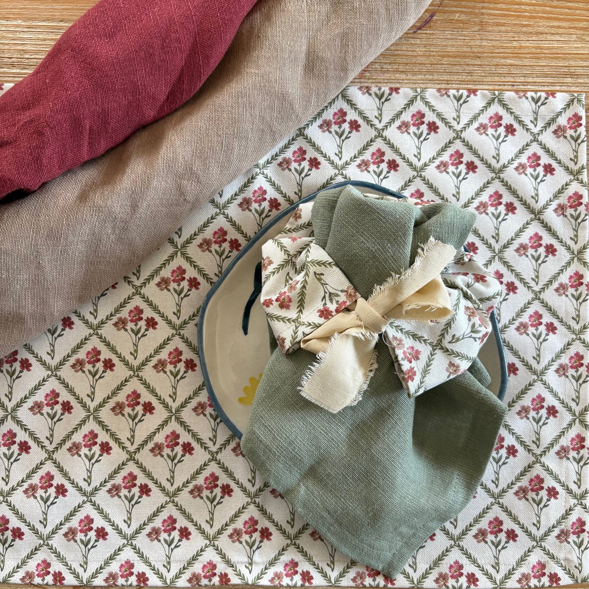 Servilleta de lino 100% confeccionada a mano y acabada a inglete para mantener su forma original. Tamaño mesa 45cm x 45cm