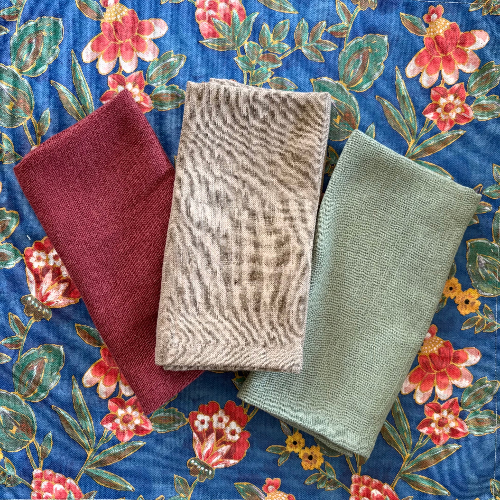 Destaca por su suavidad al tacto y su caída natural. Su acabado artesanal y su delicada textura la convierten en la elección perfecta tanto para el día a día como para ocasiones especiales. Disponible en tres colores atemporales que combinan fácilmente con manteles lisos o estampados. Elige tu favorito en el desplegable.